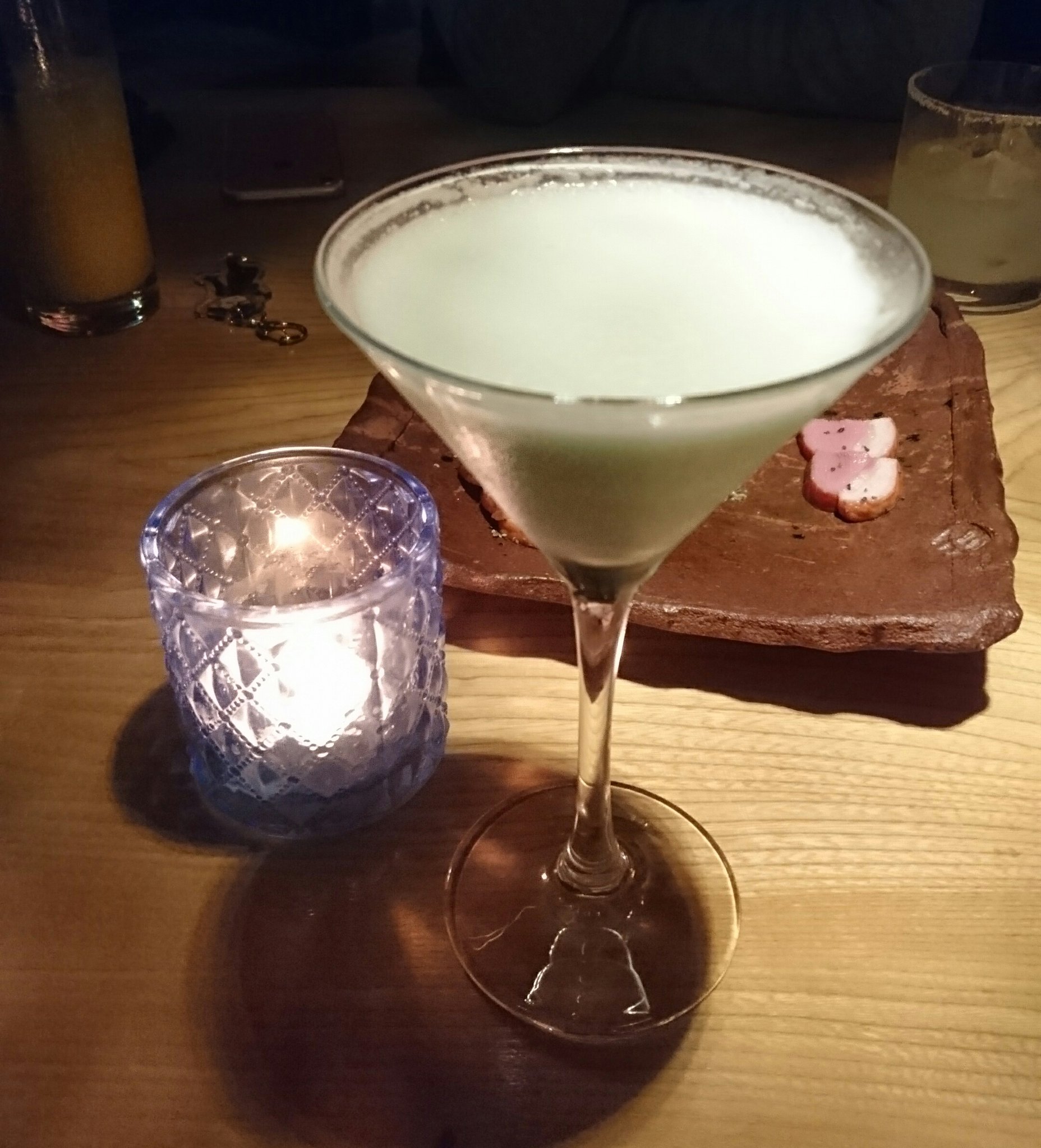 ちなみにこれはキャラカクテルを待ってる間に頼んだら(※)思った以上にトレヴァー色をしていて爆笑した、グラスホッパーです。